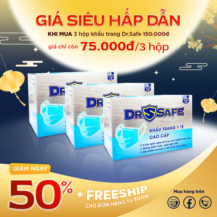 MUA 3 hộp khẩu trang Y tế Cao cấp DR.SAFE để được GIẢM NGAY 50%