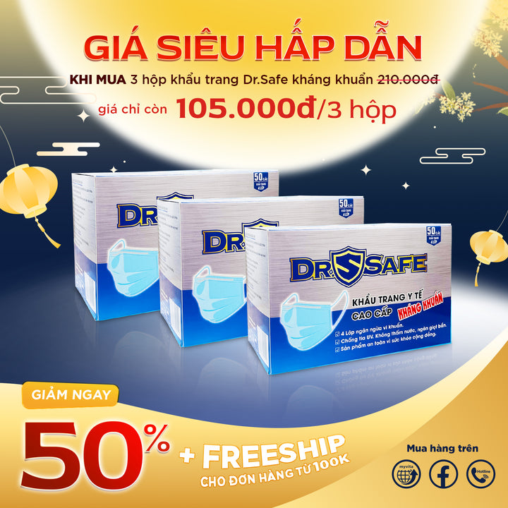 MUA 3 hộp khẩu trang Y tế Cao cấp DR.SAFE để được GIẢM NGAY 50%